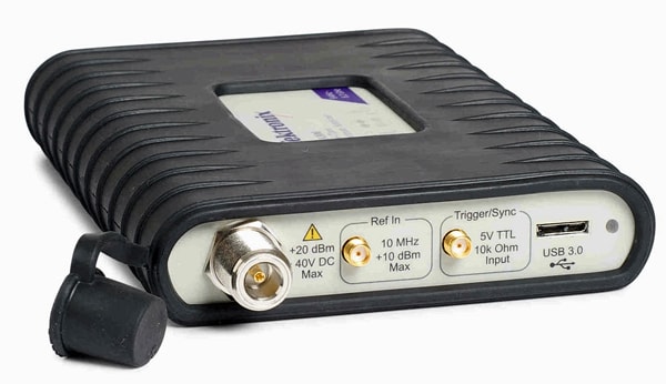 First the price, which is $3,490. This includes the company’s SignalVu-PC signal analysis software, which is arguably one of the most versatile and comprehensive such tools available. True, other spectrum manufacturers offer similar software – but not for tiny USB-powered analyzers like this one and not for free. The Tek RSA306 measures 7.5 x 5 x 1.2in. weighs 1.3lb., covers 9kHz to 6.2GHz, has a measurement range of -160 to +20dBm, a real-time IF bandwidth of 40MHz, displayed average noise level (DANL) as low as -163dBm/Hz (from 5MHz to 1GHz), and SSB phase noise of -92dBc/Hz (100kHz offset) at 1GHz. Its nearest competitor has about the same size and cost and has very good performance, but lacks almost all of its software-derived capability.