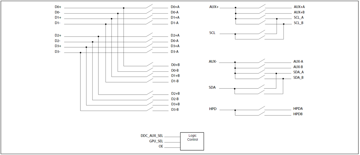 - Supports DDC with HPD channel mux/demux @ HDMI